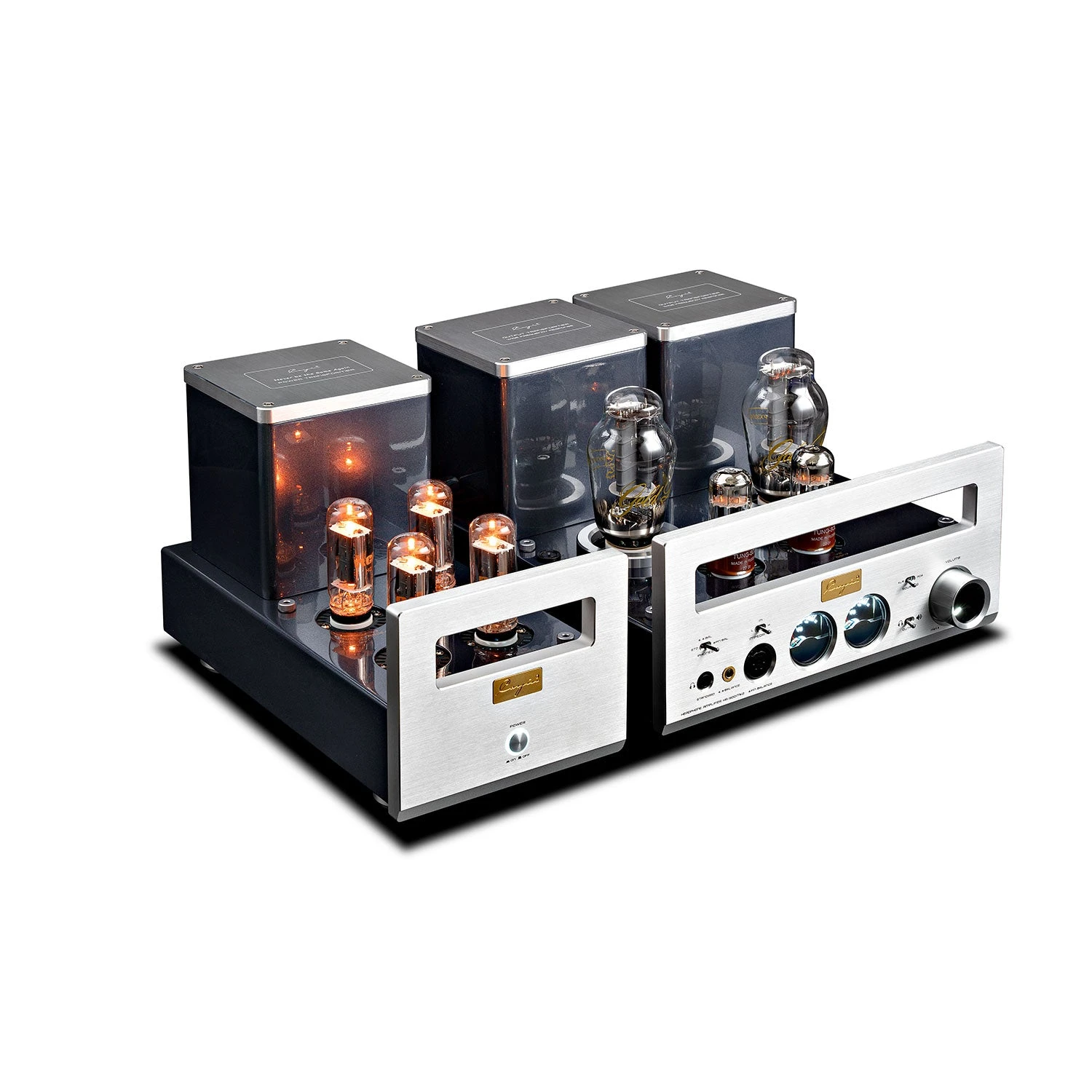 Trioden-Verstärker (SETA). Er verwendet ein abgestimmtes Paar 300B Direct Heated Triode als Ausgangsröhre und ein abgestimmtes Paar 6SN7 als Treiberröhren.