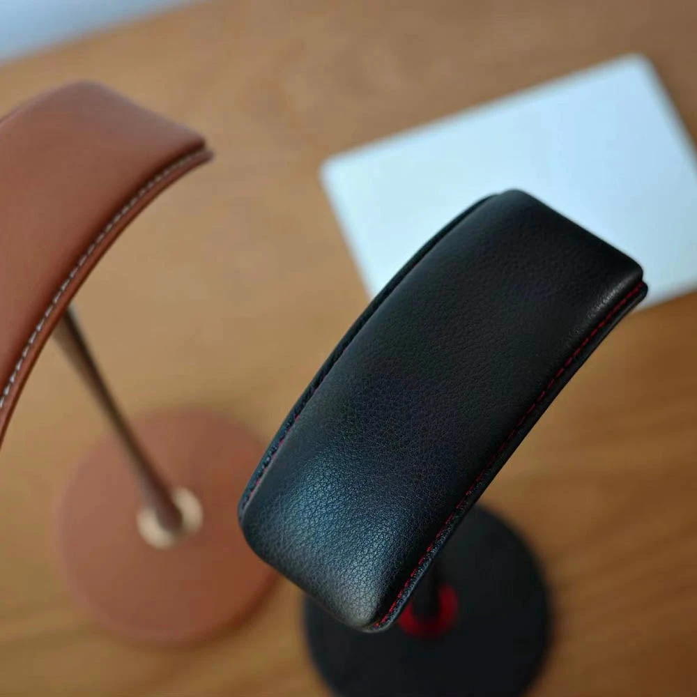 Edler Kopfhörerständer aus echtem Leder, Stahl und Aluminium.