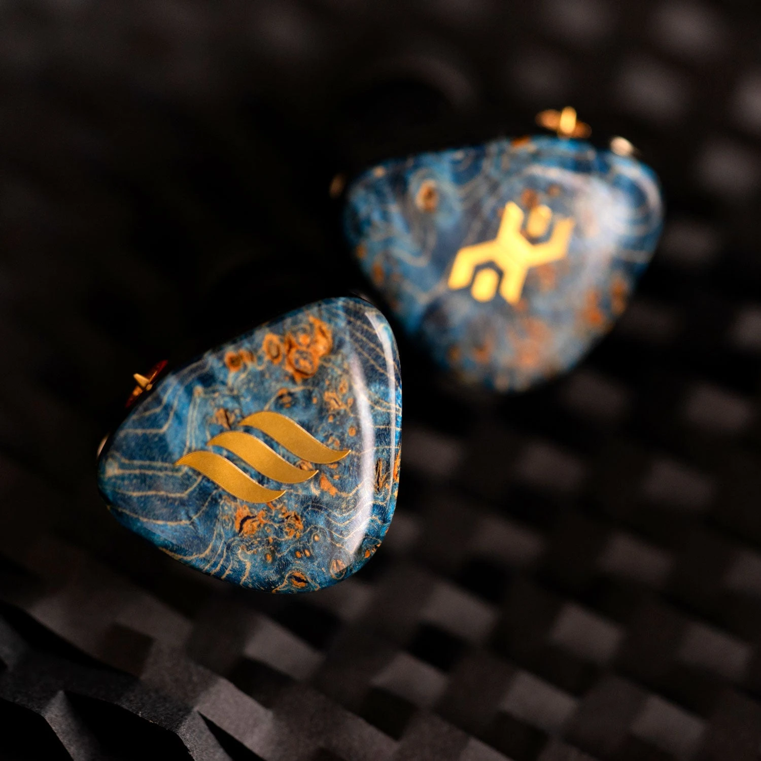 Bevor Sie sich dem Klang von GAEA hingeben, sollten Sie einen Blick auf das optische Meisterwerk werfen, das aus einer tadellosen Mischung von Materialien aus der Erde geschaffen wurde – stabilisiertes Holz und Harz.