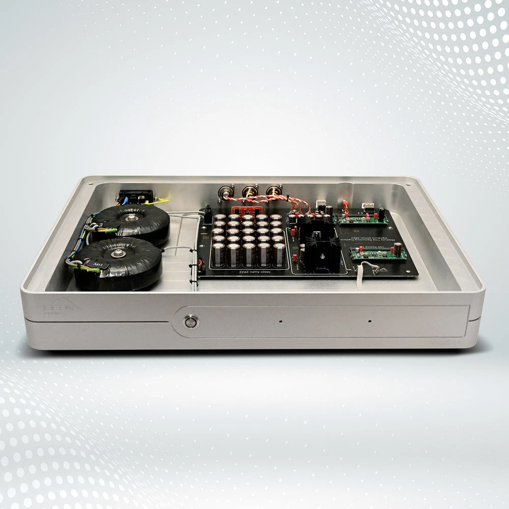 Im Absolute Time Signature kommen riesige, extrem stromstarke, extrem rauscharme, lineare Netzteile zum Einsatz – ein „Markenzeichen“ von Ideon Audio. Wir haben den Absolute Time Signature mit einer riesigen Hauptstromversorgung ausgestattet, die aus ausgewählten audiophilen, rauscharmen Seidenkappen besteht.