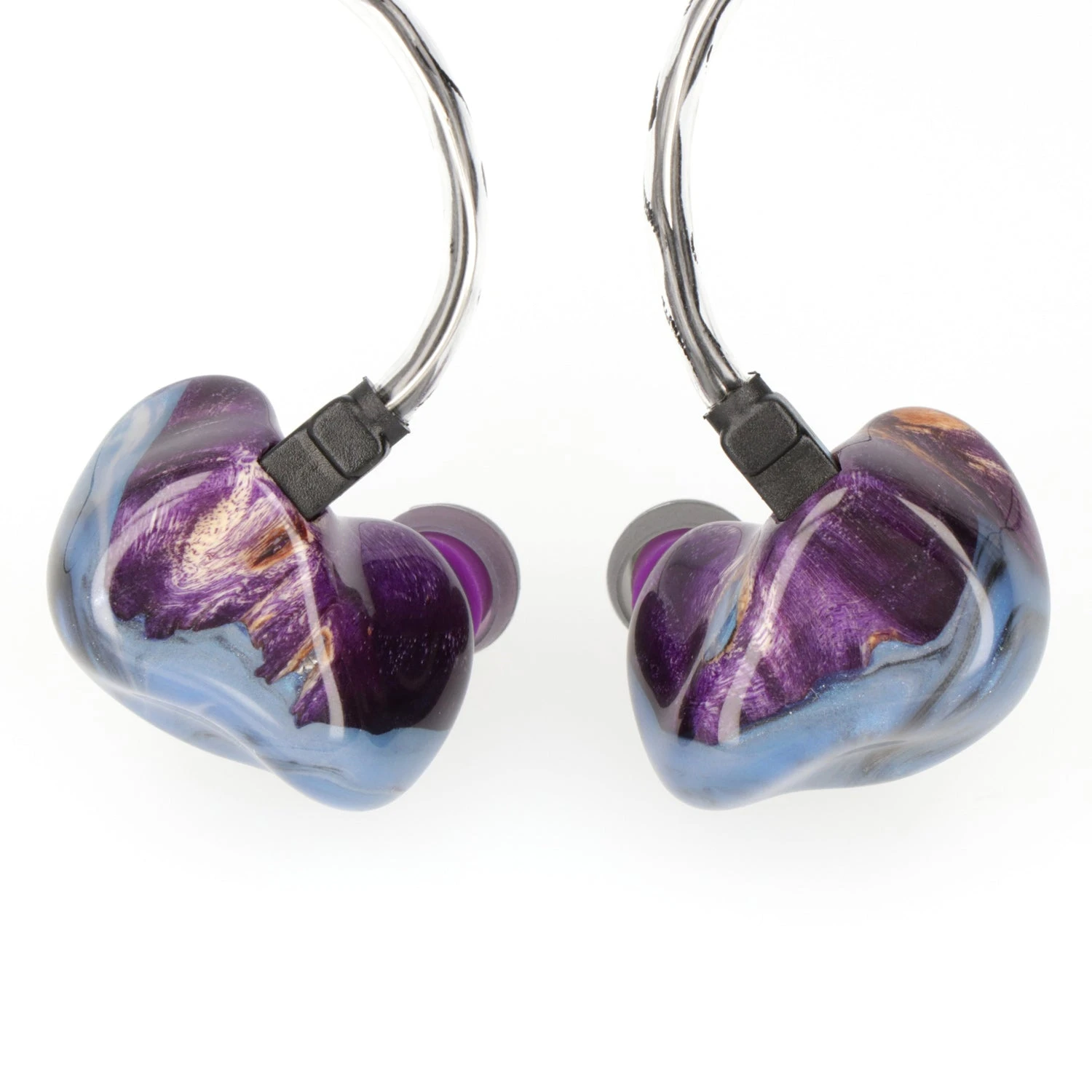 Das eXklusive Hybrid-Material aus tiefschwarz-violettem Holz und Acryl in schimmernden perlmutt-himmelblau, leuchtendem rot oder intensivem violett sorgt für eine besondere Ästhetik und bildet auch optisch die Analogie zum Universum.