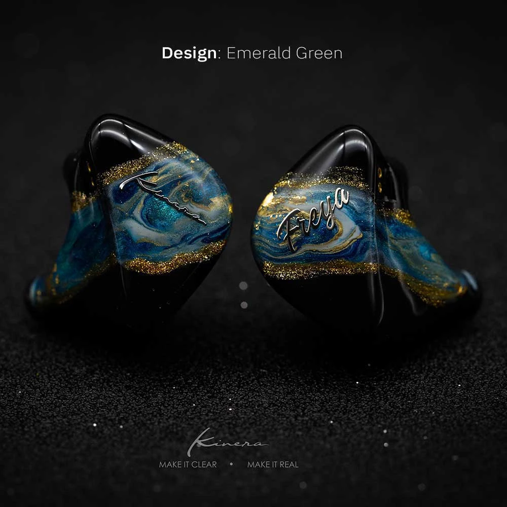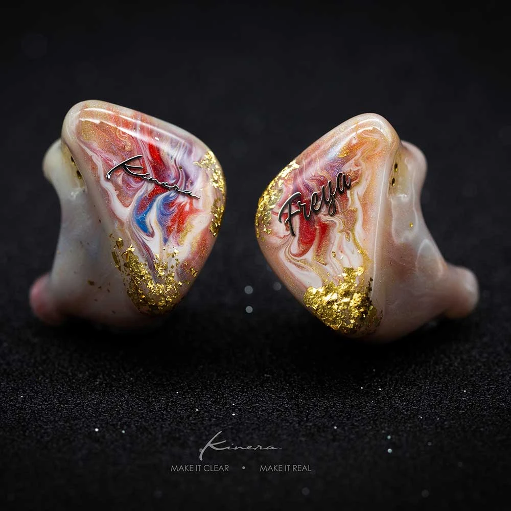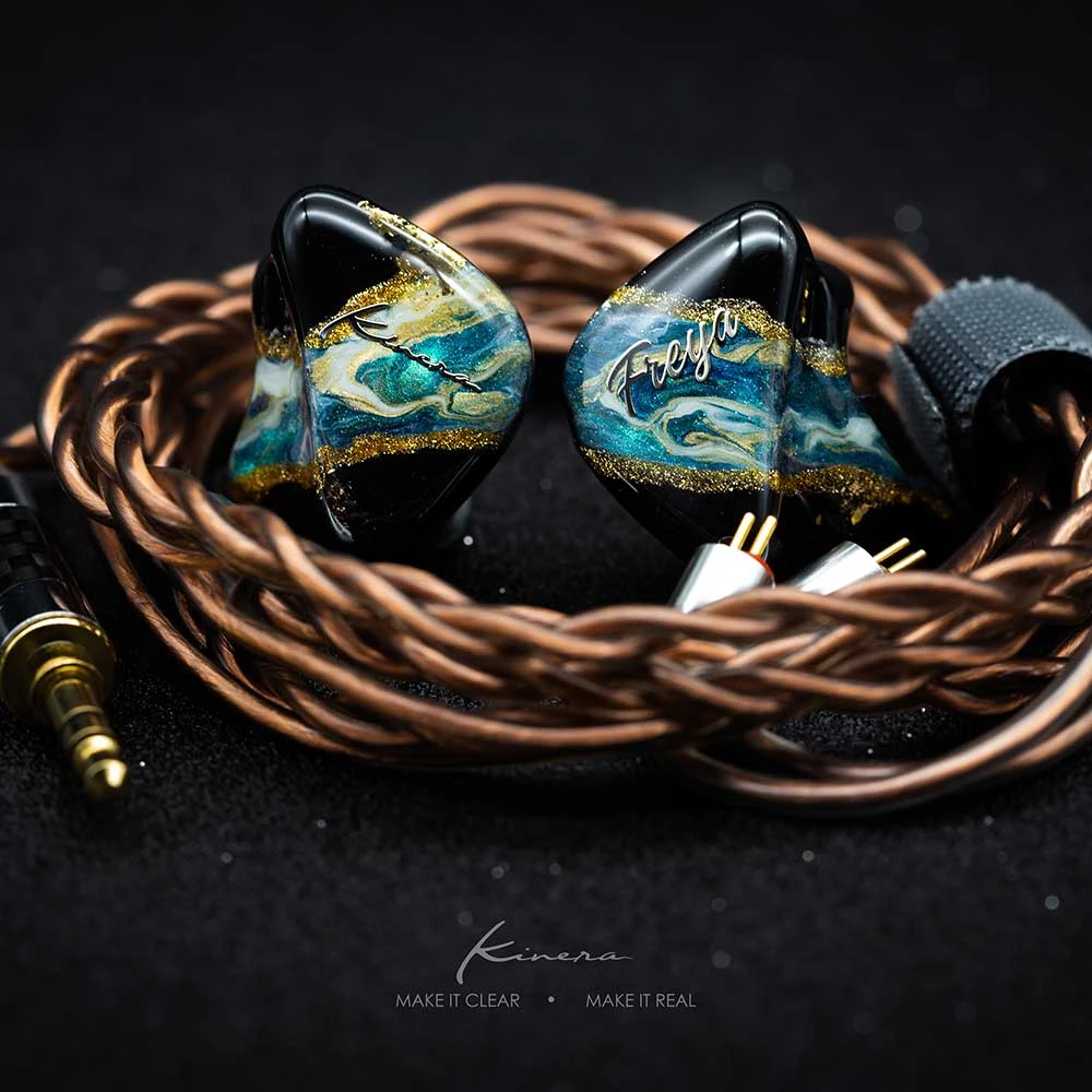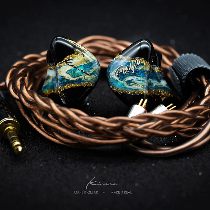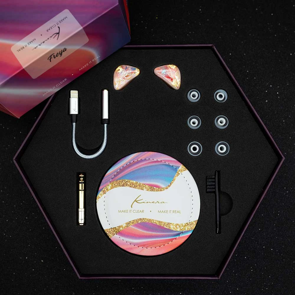 „The Kinera Freya looks like a piece of art with its handcrafted and hand painted monitor shell that I really love to hold in my hand, which comes inside a luxurious hexagon box with lots of high quality accessories . Moreover, it has a pretty nice tuned sound character that will especially satisfy vocal lovers with its upfront, emotional and musical midrange presentation.“