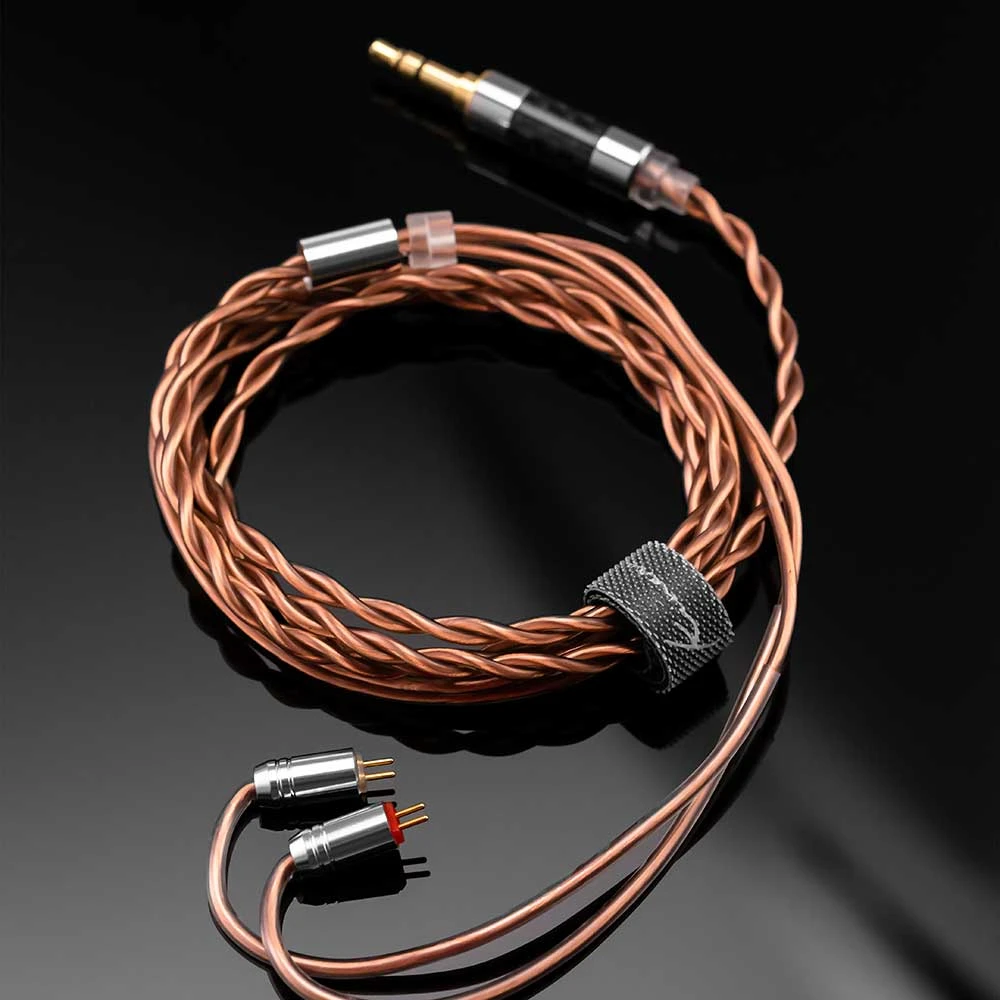 Freya verwendet einen standardmäßigen 0,78-mm-2-Pin-Stecker mit einer 3,5-mm-Buchse. Das abnehmbare Kabel kann leicht durch Standardkabel ersetzt werden. Das hochreine Kupferkabel sorgt für geringstes Rauschen und höchste Klangtreue beim Einsatz des Freya.