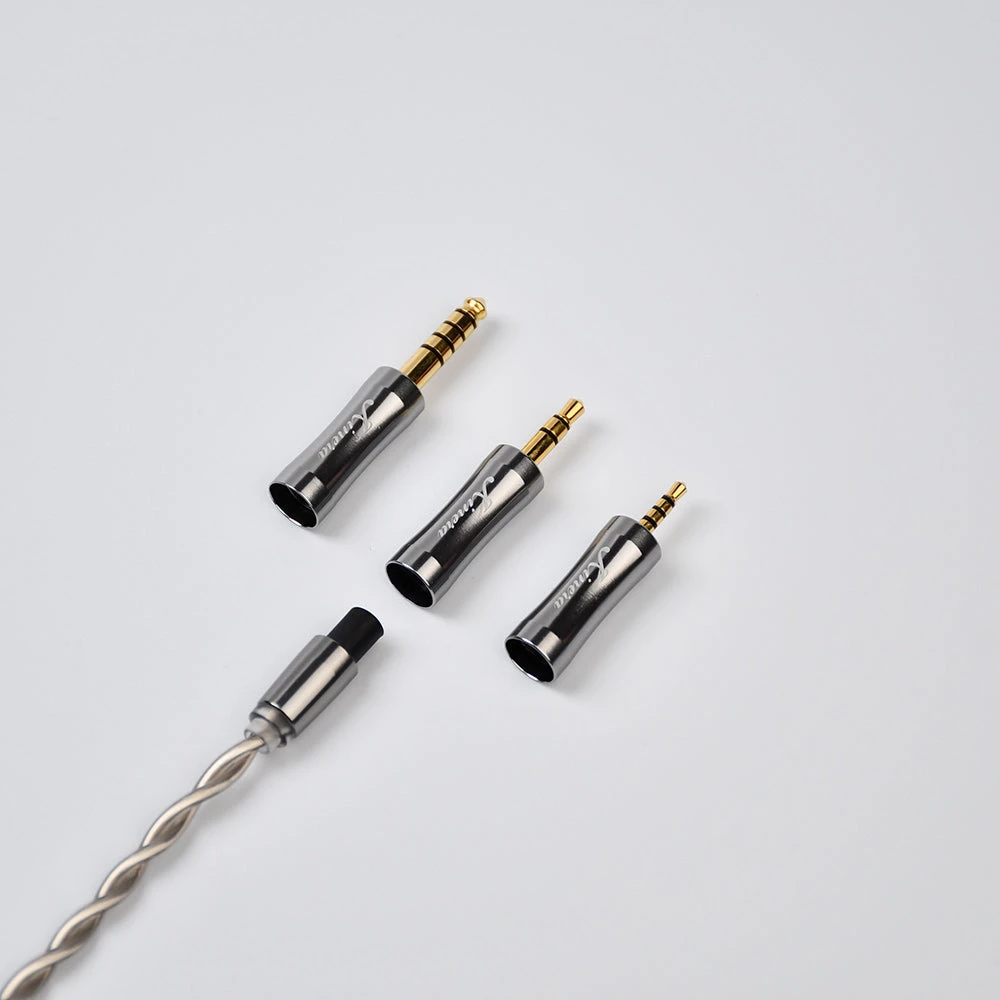 - Modulares Kabel mit Wechselsteckern (2.5, 3.5 & 4.4mm)