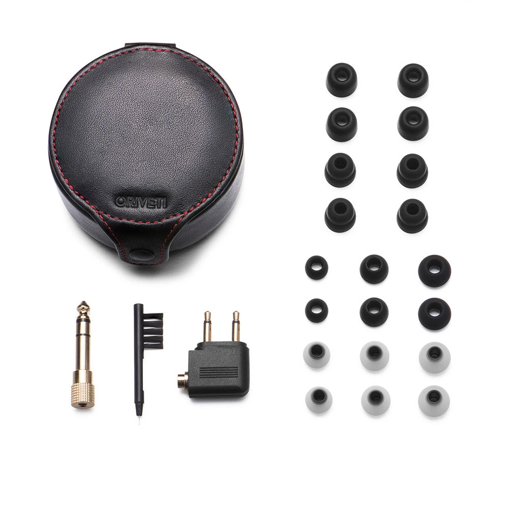 Premium-Paket mit tollem Zubehör. Die ORIVETI OH300 sind ein Premium-Produkt, so dass Benutzer mit hochwertigen Kopfhörern auch ein umfangreiches Zubehörset erwarten können. Es beinhaltet: hochwertiges handgeflochtenes Kabel aus versilbertem Kupfer, hochwertige Ledertasche, Adapter und verschiedene Arten von Ohrstöpseln zur Auswahl.